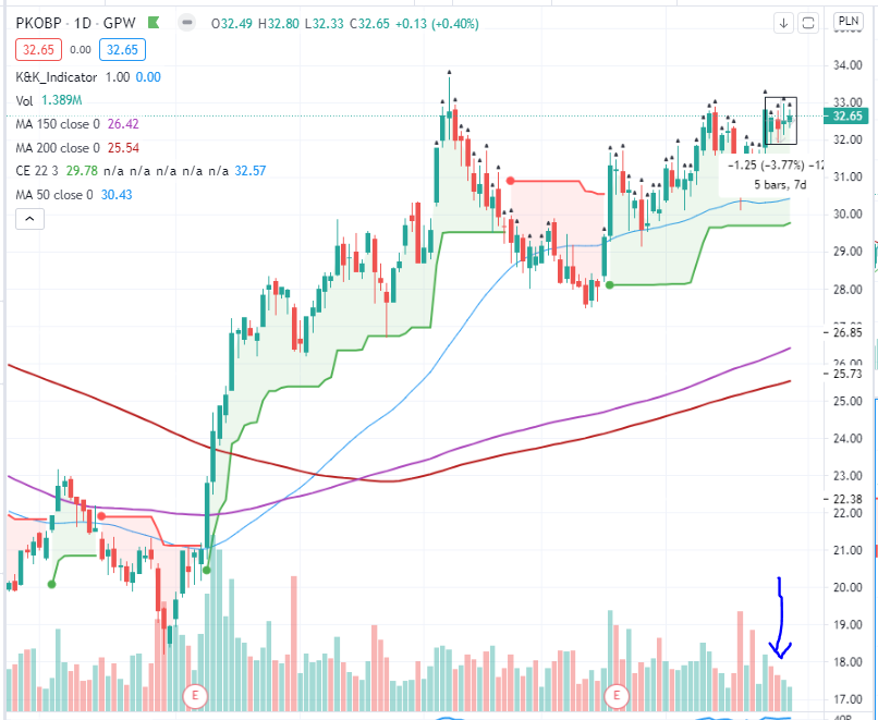 PKOBP to kolejny z naszych ‚blue chipów’, który wykazuje oznaki szykowania się do dalszego ruchu … To co mnie teraz na nim zastanawia to wąski zakres na ostatnich kilku sesjach wraz z relatywnie niskim wolumenem. Na pewno papier na krótkiej liście 🙂