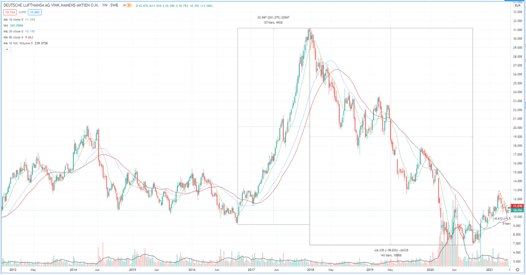 I have flown with Lufthansa too many times 🙂 That also helps me to know the quality of the business … but in the world of investing – no emotions …. lets look at what the chart and its Price Action tells us.