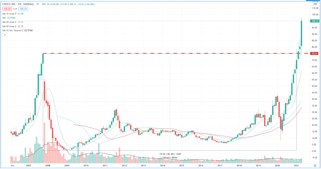 Dokonując przeglądu spółek na rynku amerykańskim – wpadło w oko coś takiego – wykres miesięczny….