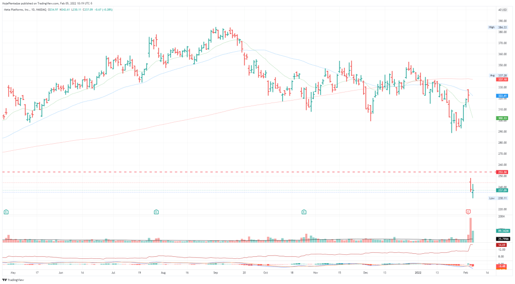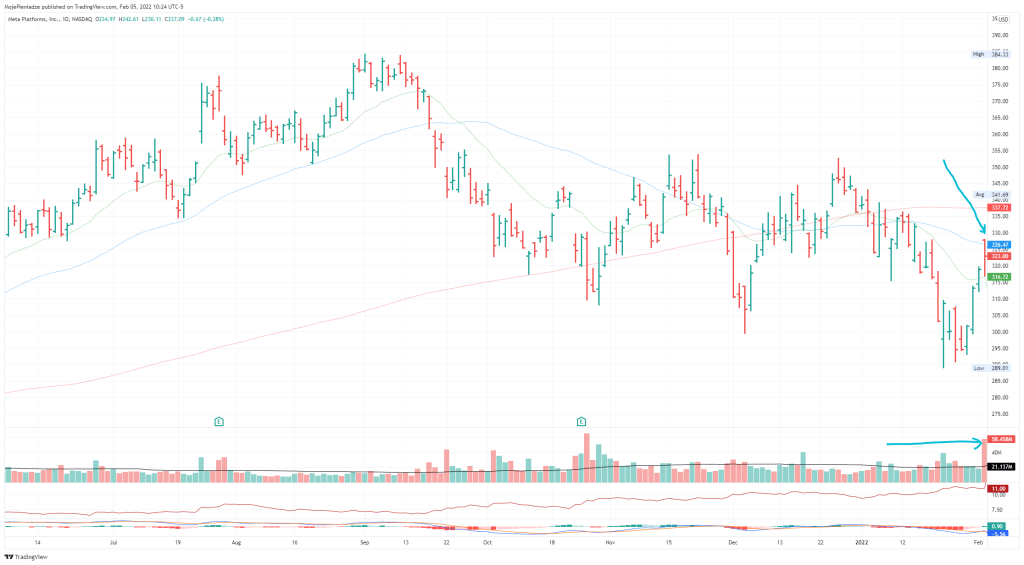 Aby polepszyć swój warsztat – regularnie przeglądam dużo spółek. Naprawdę DUŻO 🙂 Dziś przedstwawię subiektywne spojrzenie na to co wydarzyło sie na wykresie notowanej na NASDAQ, a która ostanio nawet zmieniła swoją nazwę …. Tak … spojrzę na Meta Platform, aka. Facebook 🙂