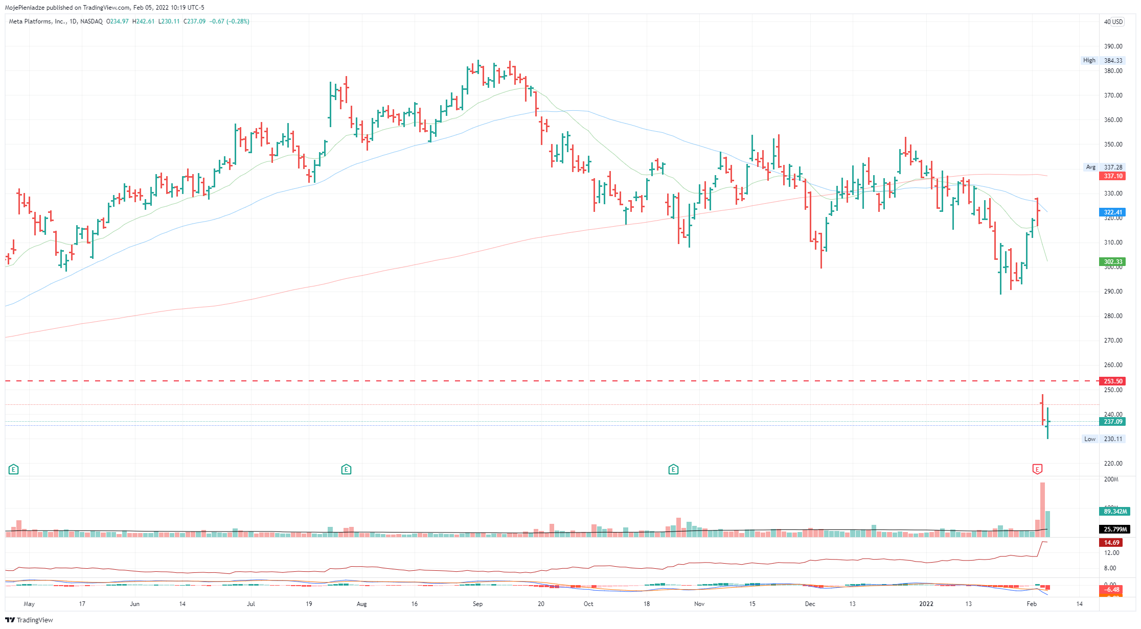 Aby polepszyć swój warsztat – regularnie przeglądam dużo spółek. Naprawdę DUŻO 🙂 Dziś przedstwawię subiektywne spojrzenie na to co wydarzyło sie na wykresie notowanej na NASDAQ, a która ostanio nawet zmieniła swoją nazwę …. Tak … spojrzę na Meta Platform, aka. Facebook 🙂