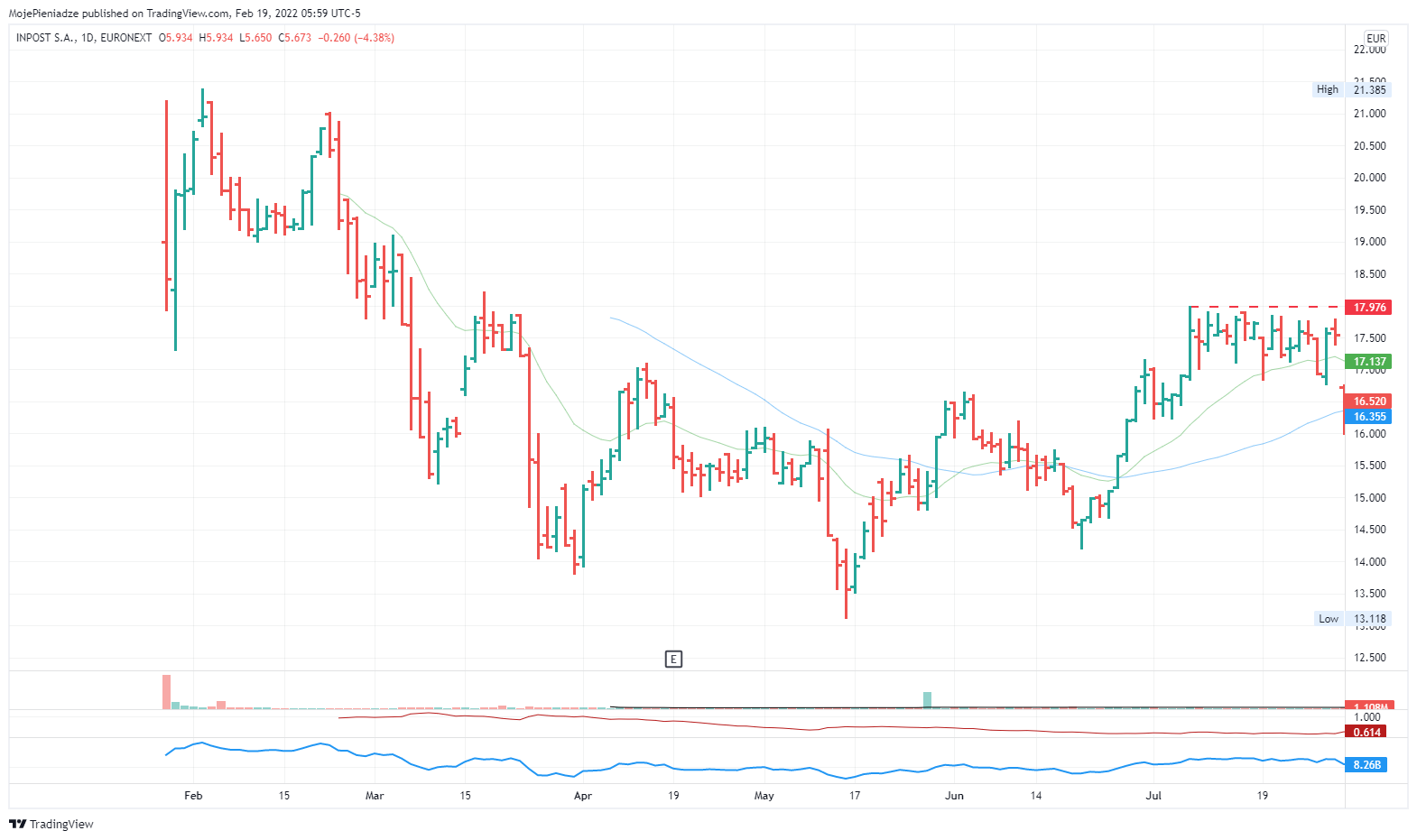 Od momentu kiedy Inpost pojawił sie na giełdzie w Amsterdamie – śledzę jego poczynania. I przyznaję … był moment kiedy szukowałem się do otwarcia pozycji….. Wykres wtedy wygłądał tak: