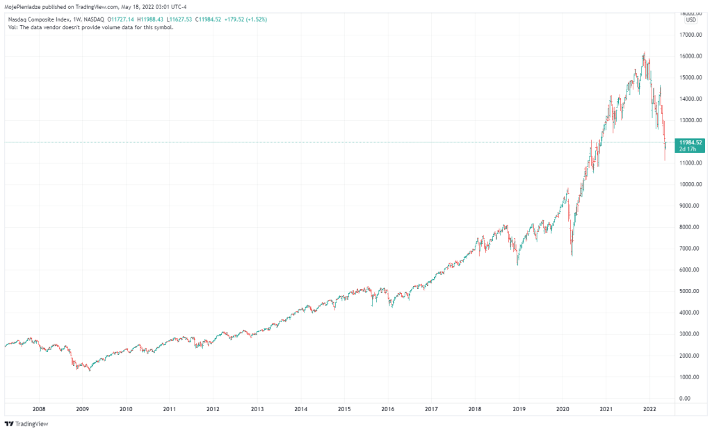 Widzimy niemal nieustanny, prawie od linijki, wzrost zapoczątkowany w marcu 2009. Owszem .. po drodze przytrafiło się zamieszanie pod koniec 2018 roku oraz epizod covidowy. Z perspektywy wykresu wygląda to tylko jak trochę większa zmarszczka 🙂