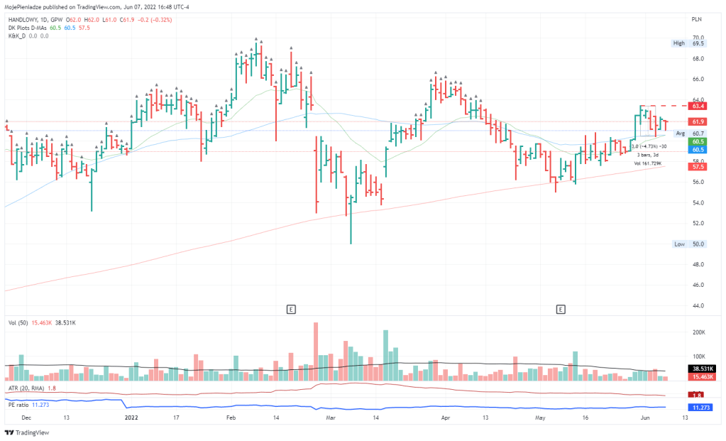 Obserwowałem dziś dwa poziomy … 62.3 i 63.4. Cena nie zbliżyła się do poziomu alertu i takie zachowanie to negatywna wymowa.
