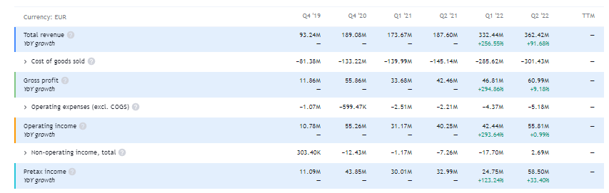 - spółka zaliczyła IPO 27 stycznia 2021, osiągnęła MAX EUR21.386 2 lutego 2021 i od tamtego czasu zaliczyła spadek do EUR4 czyli o ponad 80% … gdybym inwestował ‚na nosa’ pewnie nadal kisiłbym stratę