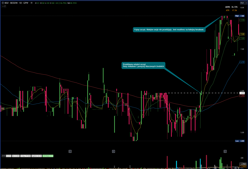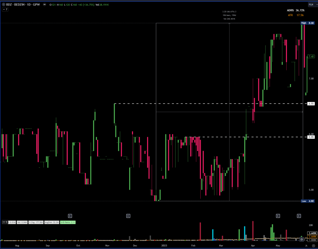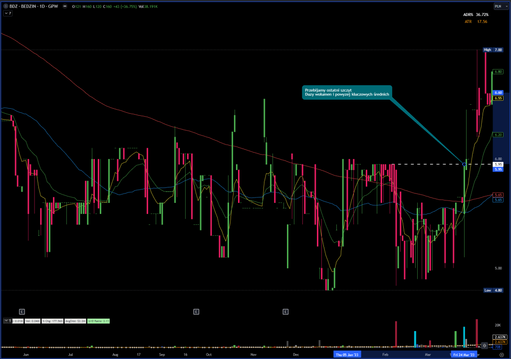 – bardzo ważne jest też przebicie kluczowych poziomów oporu 5.95PLN i 6.55PLN – w obu przypadkach na zwiększonym wolumenie